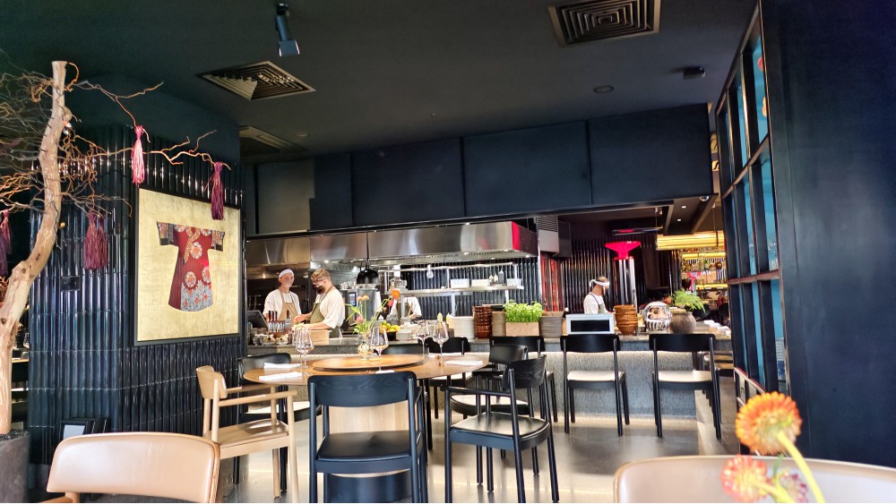 И повторю, почему так важно: встреча в отличии от одного неудачного блюда из трех или даже нехорошего одного официанта, окрашивает весь визит и всем гостям в помещении. Окрашивает впечатление и интерьер. Яркий, запоминающийся, одинаковый днем и вечером – окна почти плотно «зажалюзили», и вот практически нет разницы в окрасе, в подсветке элементов оформления или совершенной важности открытой кухни. Помимо нормальной мебели или света, что помогает рассказать вам истории блюд и… отличного сервиса. Еду больше не приносит повар, как это было в 2023.