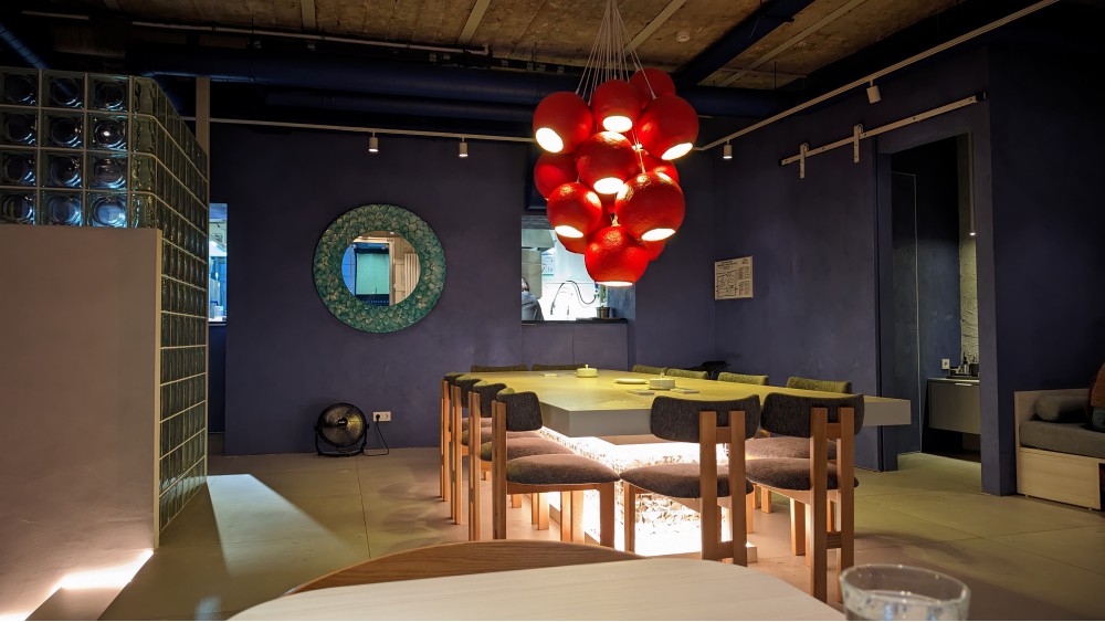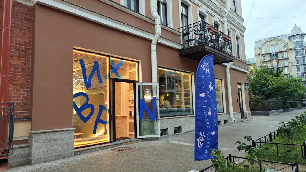Отремонтированный прекрасно дом — новый или качественная реконструкция, не важно. Опрятность и порядок фасада дарят настроение, когда входишь не в убогую глушь с фасадом как фашисты ещё разбомбили. Два зала разной формы и калибра, перед ними гардероб: всё правильно сделали. Красиво, тут согласен со всеми. Смотреть очень хорошо, но стоит влить свою тушку в это красивое… Мои ненавистные метровые диваны без спинки, ещё и в окне, вместо подоконника! Но не ушёл: представляете, как меня привлекло-очаровало концептом, как было интересно, если не сбежал? Стол шатается. Сильно. Принесённая комплЕментом вода (молодцы!) разливается — держал стакан на соседнем. Девушка сказала, что знают, это ножки пришли бракованные. Столы расставлены так, что все (!!!) установленные световые точки фигачат мимо: или в край столешницы дерут, или совсем в пол. Дог-френдли, но пишут, что и кота нужно приводить. А у меня нет кота. А местная собачка не мешает, пока культурная-петербургская! А если кот с собакой из Сызрани?
