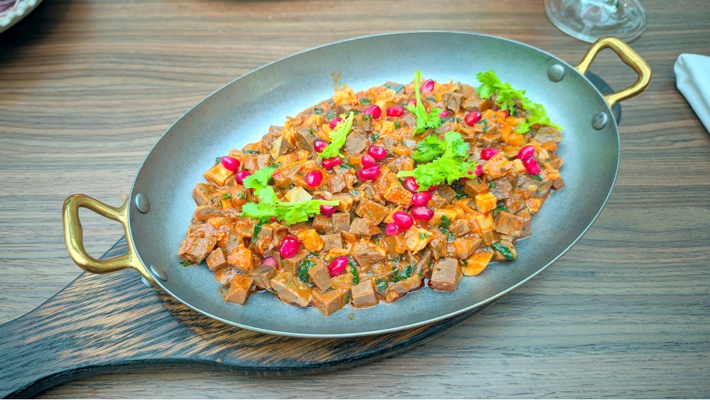 Хрустящий салат с уткой, виноградом и яблоком (890): восторг на вкус, однозначный хит. Вкус, фактура, они интересны, они знакомы и необычны одновременно. Единственное: если не официант ломает тончайшие «страницы», а гость по совету официанта, у него эти впечатления тоже станут частью общего! Тактильные впечатления от пальцев, звуки, что сам создаёт, ну и видосик сделать, как муж ломает салат. И название наконец-то отражает суть блюда. ХИТ, ТОП.