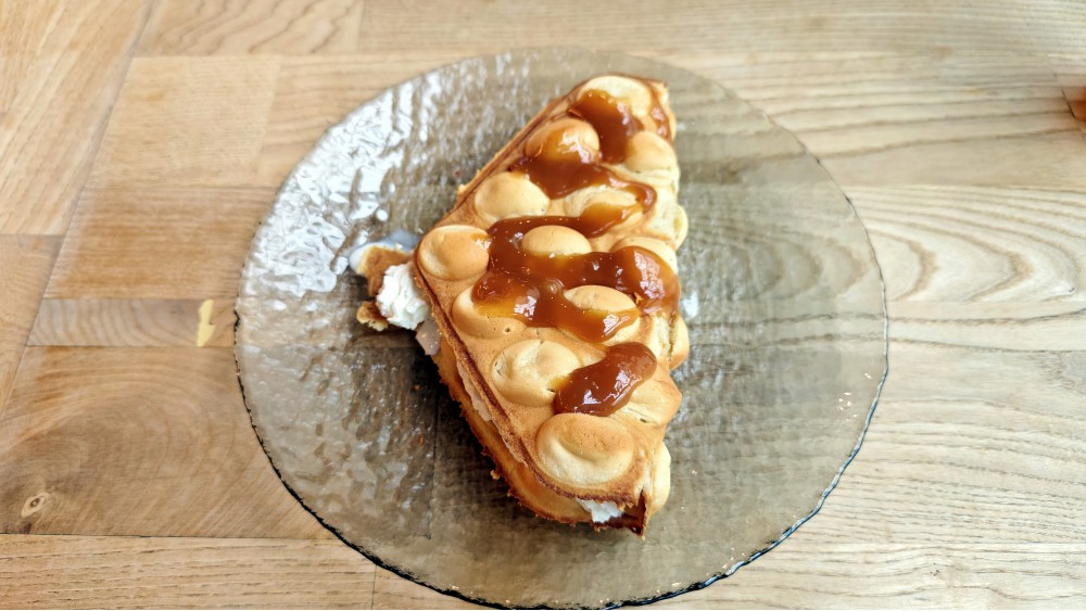 Вафли Крем-чиз — «Лав Стори» (590): «клубника и клубничный джем, шоколадный соус». Гладко, нежно, избыточно, как по мне, сладких наполнителей, я бы оставил какой-то один, но люди оценивают как «нормальненько». Тесто нормальное, а будучи смазанным легко взбитым чизом, так и симпатичное! Если это (точно) самая сладкая в перечне товаров история любви, то ладно.