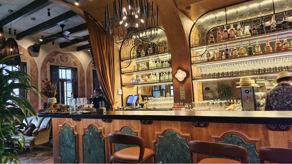 Про интерьер не скажу ничего, видел только стенку напротив бара и сам бар. Наверное, все люди не врали про остальной ресторан, все фото не генерировали нейросети. Наверное, есть второй бар, о котором слышал, и красивый антураж, что видел на фото. Не могу подтвердить. Пока видишь только несколько фотосессий в зале, позирование и большие объективы. По двадцать минут съёмки, бесцеремонные, по-хозяйски, почти что с опорой на мою спину в поисках кадра. Я понимаю, что это не вина ресторана… Но ведь специально ждал МЕСЯЦ, пока все «авторы цифрового контента» нафоткаются и напозируют, я ведь хочу в ресторан попасть, а не в фотостудию.