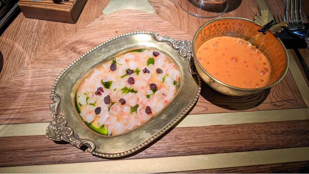 Первые двадцать минут — совершенная мука. Как будто начальство не вышло на работу, и никто не знает, что делать. От встречи и до первого блюда прям как передача с розыгрышами. Просто розыгрышами, не 17 PRO MAX. В воскресенье нет на посту у входа никого: хостес, админа или какого работничка. Пытается встречать один из официантов, хватая из очереди совсем не первых — не спрашивает. Растерянный, явно не знает, что делать, хоть и планшет с бронями берёт в руки: могло быть простительно, всё ж пытается помочь, но только злит. Смотришь на это лишних несколько минут. Пришлось ловить другой персонал и его просить помочь — раздеться хотя бы. Можно было стоять... сколько?