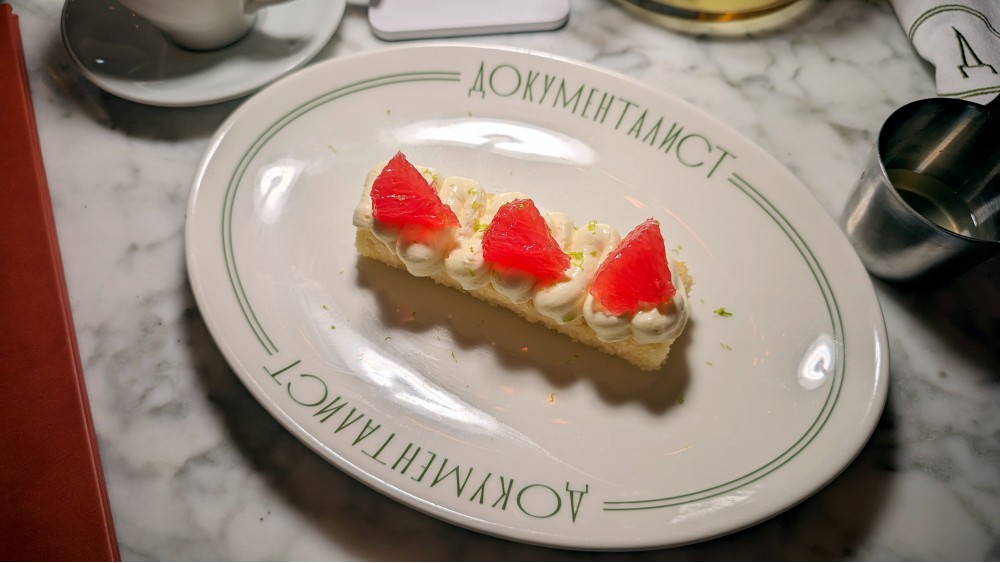 Наверное, самое важное перед походом — это настрой. Действительно ли полноценное новое место, как заявляют, или переименовали просто? Верю про новую команду и повара, меню и название, но и «Лендок», в котором был в 2021 году, несколько раз менял продюсеров и команды и последнее время сидел на купонных сайтах с хорошей скидкой. Звонок — хостес отвечает: «Лендок». Приходится спрашивать, как сумасшедший: «А “Документалист” — это вы?» Приходится думать: те же, это просто новый маркетинг? Ладно, но я и бронь делал на «Лендок», правда, её не подтвердили, хоть и видели её в ресторане онлайн, обращаясь по имени «Сигизмунд».