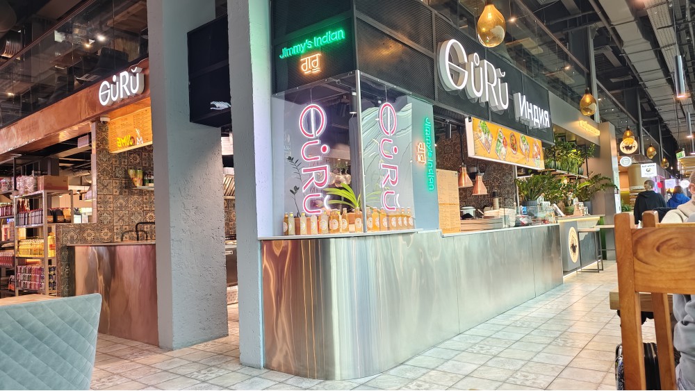 Второй круг, продолжаю пробовать всё меню этого недавно открытого Jimmi’s Indian: вторая вывеска, угловая, и как бы «знак качества»? Качества?