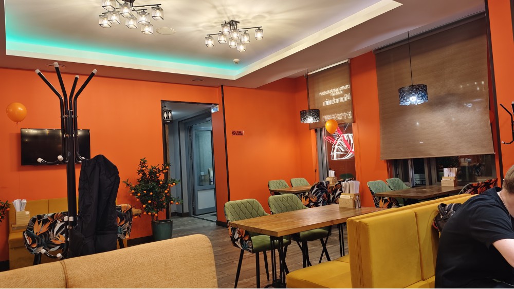 Как и все новые китайские рестораны, имеет достаточно свежий универсальный интерьер. Хотя «новые» сейчас — это слово некорректное: открытия последнего времени чаще всего простой перекуп, и таких много — без ремонта, новая вывеска или даже новые владельцы старого названия. И мне такие современные нравятся. Да, мы лишаемся антуражности классических прожжённых скатертей и диванов, провонявших обивок, пятна на пятне на полу, но мне в таком современном месте гораздо комфортнее. Да и в этом доме, согласитесь, современном ЖК на площади Собчака, другой и нельзя представить. Свежий ремонт, демократично, но «китайскости» в меру, и яркости, обивок в том числе, и стойки, неплохой, продуманный свет, любимая пропорция диванов (куртка-подушка© в помощь, других не придумали) и кресел. Китайский ресторан тут был и раньше, пока летом не забрали новые хозяева, и по оценке вы поняли, что эти ЛУЧШИЕ!