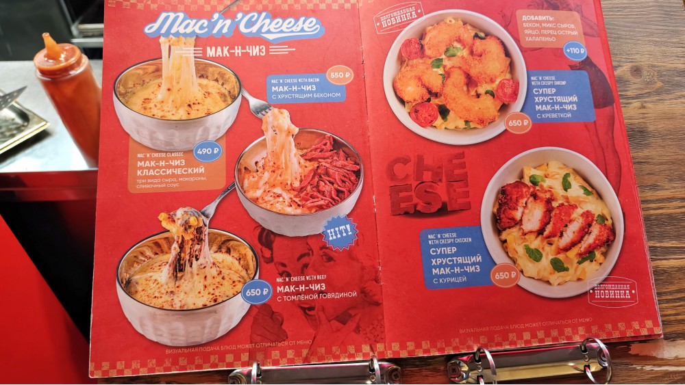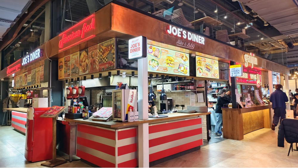 В апреле сообщил, что и нет больше Joe (https://allcafe.ru/reviews/kolonka-restorannogo-kritika/proekt-subboty-v-eat-market-joe-s-diner-tretiy-sezon/) в Белом Доме, а корнер American food всё ещё называется так. С припиской Ribs & BBQ и «Американская кухня». А мог бы и по моде (опять) переименоваться! И сразу важное: те блюда, что обрамляют угол-корнер, частично из старого меню и больше на страницах тетради не представлены. Вот как ушедший от нас «стейк брискет». Зато есть…