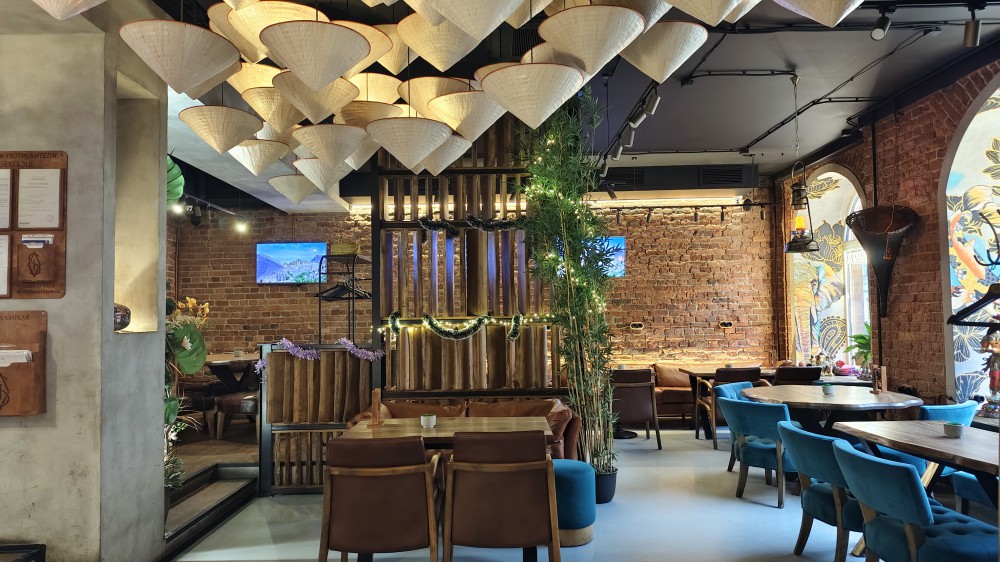 Днём тут тихо, больше гостей не вижу: убрали ланч, что раньше был популярен, или же офисники приходят позже, после 13.30? Интерьер и меню без изменений, надо начинать говорить про новое. В смене два официанта, совсем не говорящих по-русски. Наверное, впервые в России делал заказ и общался весь обед на смеси жестов, английских слов и наития. Нет, я люблю добавляющий антураж в национальном ресторане, например, итальянский или грузинский, акцент, но тут реально тяжко. Что один суп надо, это объяснить смог, а вот то, что прошу по переменам, по курсам выносить, не вышло, пальцев не хватило. Включенный переводчик на телефоне не смог помочь. Так что спасение еды (а порции средние и большие, точно не быстрые в потреблении) — это совсем не та радость, что была в первый визит.