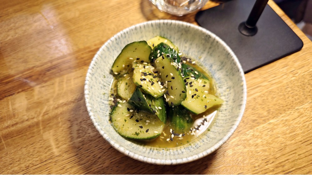 Битые огурцы (270) не узнать. Нет никаких привязок к рецепту. Совсем малосольные огурцы в странном «бульоне». Как битые в паназиатском месте — провал полнейший.