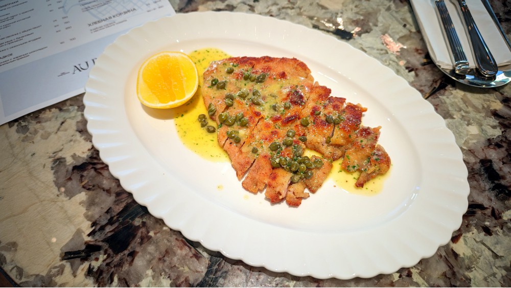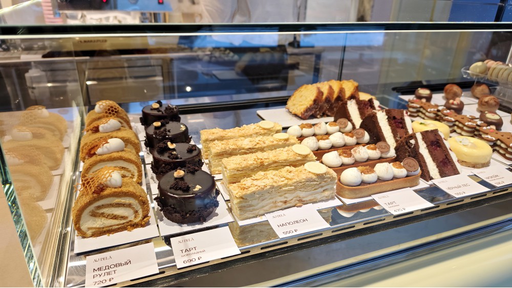 «На Петроградской стороне открылась кафе-кондитерская Au Delà от шеф-кондитера Елены Шангиной. В основе концепции — русско-французская кухня. Шеф-пекарь Данила Дьячков погружался в ремесло в Эстонии в течение двух лет, а теперь дирижирует выпечкой и хлебом на закваске. Бренд-шеф Сергей Постников (ex. White Rabbit, Fresa's Group) — в ответе за основное меню и завтраки: пробуем рисовую кашу с тульским пряником, сливочный буйабес, орекьетте с кроликом, парижский шницель с соусом бермонте», — пишет нам канал «Собаки». А я тринадцать раз за первые минуты спросил себя: зачем пришёл? Более неприятного начала я не встречал очень давно.