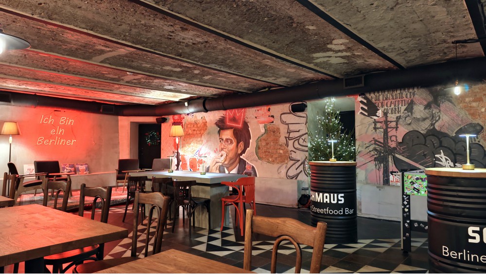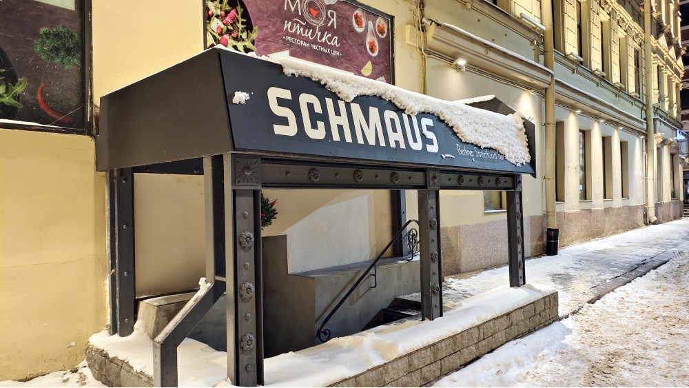 Важно-вводных будет две. Команда: «Команда баров Gypsies & Jews и Branch Garage открыла стритфуд-бар берлинской кухни Schmaus. В меню — денер-кебаб, карри-вурст, томлённая в пиве голяшка — всё рассчитано на совместное потребление! Всё это подают под аккомпанемент берлинского лагера, радлеров, рислинга, шнапса и травяных биттеров», — канал «Собаки» сообщает первым! Хочется юморить, кто открыл немецкий бар, но любая шутка будет дурацкой. Тем более в баре Gypsies & Jews на Ломоносова (одна запрещённая соцсеть в далёком 2018-м посчитала название оскорбительным и отказалась создавать локацию нового бара от выходцев из «Бекицера» – Александра Болтяна, Бориса Кисилюка и Ивана Ткаченко) я не ел ни разу. Заходил три раза с открытия, но ни разу не поймал контакт с работниками бара, барменами не назову, не удалось заказать, пусть и один раз со мной поздоровались. Наверное, хороший бар, хорошие люди. Не могу подтвердить. Но новое название запоминается: «Алло, это Маус? Шмаус!»