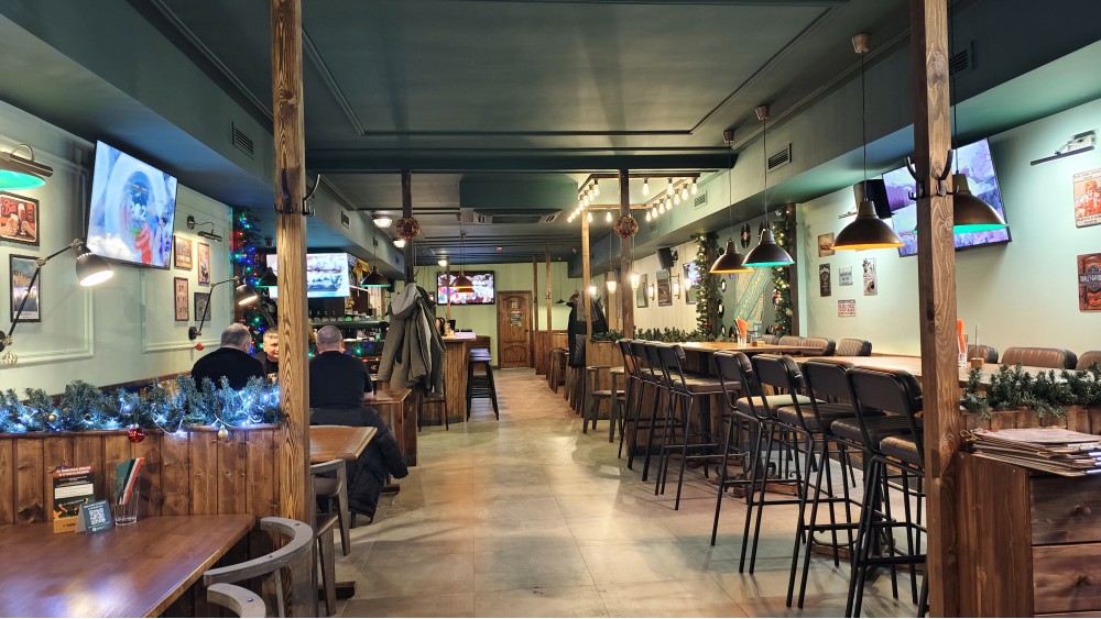 С виду всё нравится: понятно, куда пришёл — питейное, демократичное заведение! Красиво или нет, это у всех разное, но вот БЫТ: как можно было так всё неудобно сотворить, настолько хочется уйти. Я не думаю ругать паб за поиск персонала, хотя зона приёма обозначена, или за ветродуи в туалете, а вот всё остальное… От двери — каждое открытие, при наличии какой-никакой входной группы — волна холода. Но тут можно пересесть, верно: места есть. Стол не шатается на кривых ножках или на неровном полу, мой и тот, что рядом, — мощно пружинит, на пять сантиметров амплитудою столешницы двигается. Не то что пиво поставить невозможно — рукам неприятно опираться, и меню при официанте улетает от качки — оно ламинированное, скользит. Или вот лампы: вроде лучшие в мире, я такие в «Барслоне» хвалил нещадно. Но эти на двух шарнирах недвижимы, не регулируются! Подвешена очень высоко и, точно как лампа злого следователя, слепит в лицо — года три такого «СОЗНАВАЙСЯ!» не видел! Люди работают месяц, неужели не жаловались гости? Благо не все такие места! Есть разные посадки.