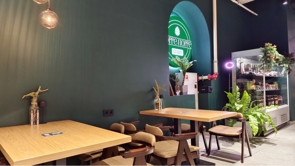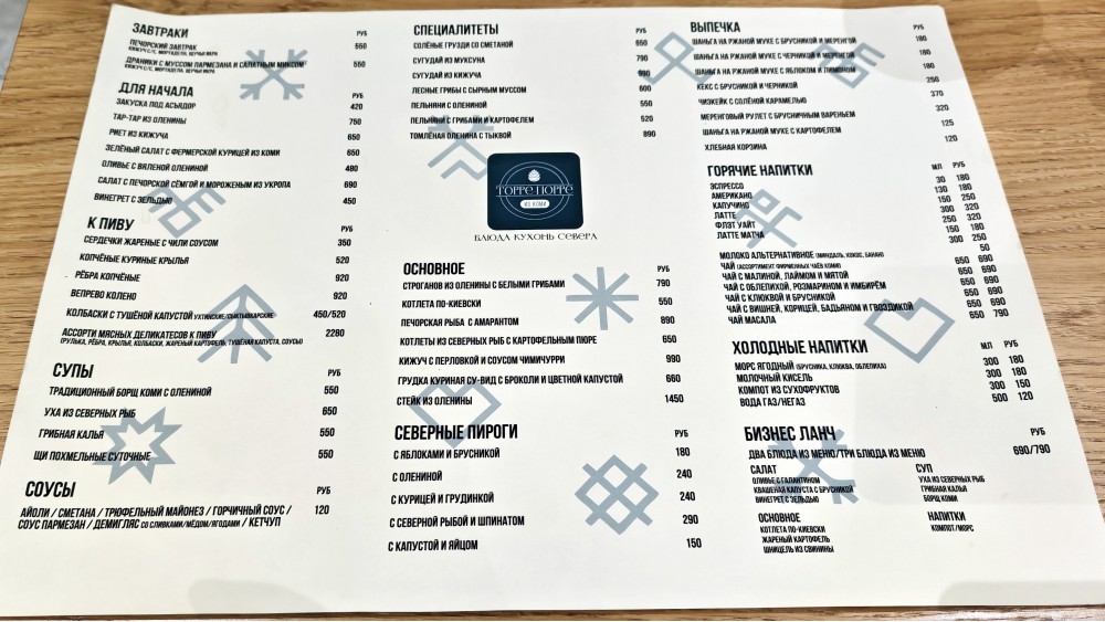 При всём моём обожании оригинальных концептов, а кухней Коми, продуктами и традицией, согласитесь, у нас никто не занимался ранее, первые варианты этого заведения — отдельного кафе или ресторана, не корнера — в пространстве Vokzal 1853 смущали именно мешаниной в меню. Считал проблемой «Сэндвич с мортаделлой и луковым джемом» в таком северном месте. И вот только через полгода, когда устранили все первые недоработки, сообщив об этом, в том числе, самой третьей (третьей?) итерацией меню, уже чистой и искренней, решил ознакомиться. Тем более, цитата: «Почти всё сырьё — от оленины и местной рыбы до грибов, ягод, настоек, водки и пива — приезжает напрямую с коми-фермерских хозяйств. Исключение — только овощи и крупы, которые по логистическим причинам берём из проверенных поставщиков за пределами региона. Наше меню — это искренняя, домашняя кухня Севера: сугудай, шаньги, пельмени с олениной, борщ с брусникой и другие блюда, в которых вкус и аутентичность важнее эффектности. Мы сознательно не претендуем на высокую кухню — наша цель другая: быть местом, куда хочется возвращаться за честной, тёплой, “понятной” едой на каждый день».