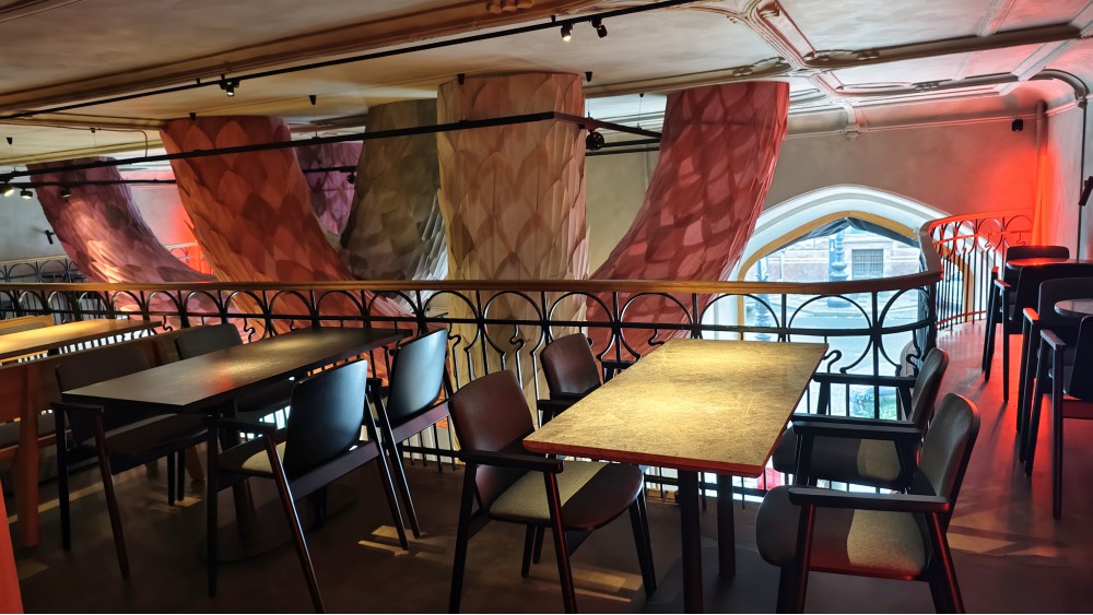 Я так стар, что до сих пор это помещение называю «магазин Trussardi» - помню, как его открывал Анатолий Собчак. По-прежнему, почти нет вывески – скромные буквы на стеклах витрин, с уважением к Великому Городу и госсоседу - РосФото. Уютно, тепло, хорошо. Обжили то, что после реновации логично пахло свежим ремонтом и отъездом строителей. Даже после «закрытых вечеринок» по случаю открытия, было непривычно спустя стольких лет в старом оформлении. Массивный и важный второй этаж по-прежнему угрюмейше барный – точно воссозданные задние ряды кинотеатра, что провоцируют на… Между ним и основным, воспетая авторами цифрового контента «конструкция». Так описал скепсис по отношению к главной фишке оформления «…части «дракона» кажутся легким занавесом, сделанным из простого материала, не складываясь в образ… он тут работает как наполнитель в коробке заказа с маркетплейса. Если его цель пожирать самое дорогое сейчас – пространство, воздух и отличия высокого (козырного) помещения на два уровня, то он сбрасывает настройки объема зала в два раза… В общем, я категорически против этой идеи, мне категорически не нравится воплощение». Сегодня не буду так резок. Объятые экономией интерьеры новых мест сейчас не радуют вложениями. Скоро будем ходить смотреть, как в музей. На диковинку посмотреть: «вот, вложения»!