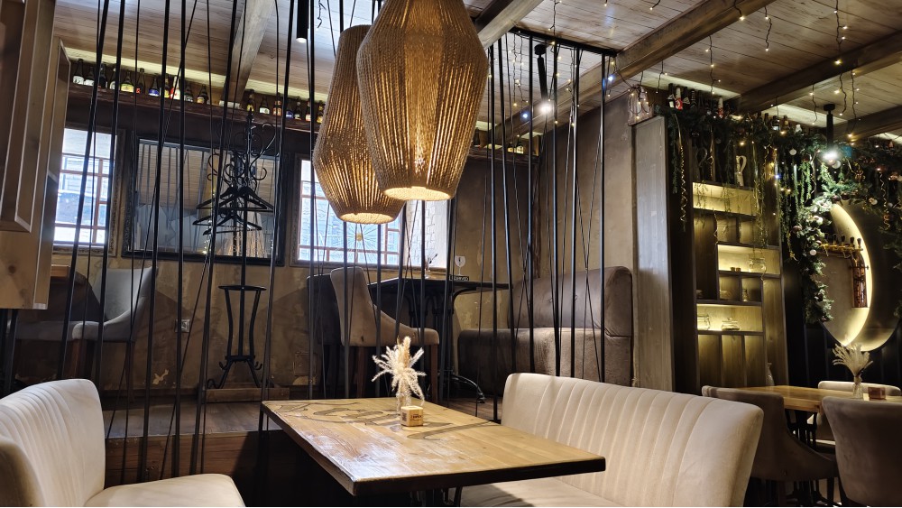 «Индустриальный лофт с традиционными элементами: кирпичная кладка, железные стеллажи, фрески в духе Брейгеля и панно с фламандским городком. Здесь три зала с кожаными диванами и живой зеленью», — пишет нам «Всемеда», и этот интерьер мне неожиданно нравится. Обжитость играет на впечатления от пивных мест любого вектора, много раз повторял. И элементы, придуманные интересно, вот как «ступеньки» кирпичные на окнах — я не видел ранее, или пивные краны в оформлении, да тепло пеньковых абажуров. Диваны даже нравятся, пусть и нескольким подушкам протрузия скажет спасибо. Комфортно: несколько помещений, и ещё разные уровни — гости рассаживаются по сторонам и не мешают друг другу, даже с громкой деловой сутью, что днём смотрится вполне нормально. Пугают только перемигивающиеся праздником гирлянды на потолке: если это элемент постоянного оформления, а не оставшееся с Нового года, то я протестую. Бельгийское пивное кафе, не совсем дискотека, пусть праздник будет в тарелках, а не дискотека над головами.