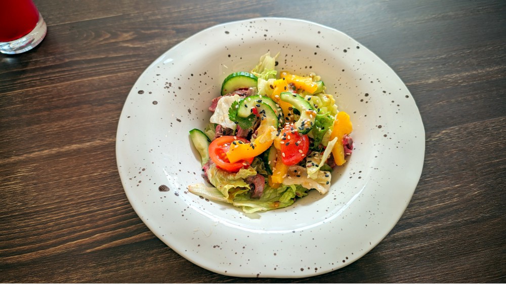 Милое место. Ничего особенного, скорее кофейня по тому, что вижу за столами (разговорчики под чай), и по тому, что вижу на столах (напитки только). В основном. К часу дня почти аншлаг, включая общий стол. В подтверждение увиденному: закончились плечики на вешалке, пришлось пристраивать кое-как свой ватник. Милое место: никаких изысков дизайнерских, просто, приятно, не переусложнено, а мило. Стол шатается немного, судьба бело-меховых стульев внушает опасения г-ну Отбеливателю, в остальном — точно в цель «Казуальные мы»! А общий стол вообще приятнее многих не-коммунальных! И даже собачья постелька такая уютная, что не был бы я столь стеснителен и старомоден манерами...