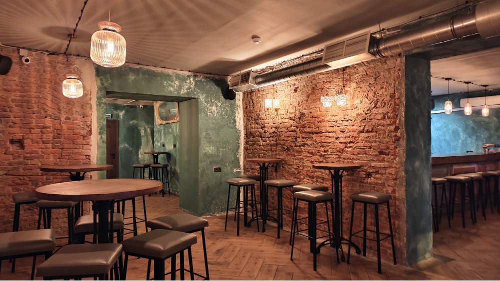 Не первые дни, пару месяцев прошло с запуска такого интересного проекта, даже на фоне открытия в прошлом году доброго десятка рюмочных в Петербурге. Совсем изменился фасад по Гороховой близ Красного Моста: нет больше прошлой яркости, есть одно дерево перед входом. Два зала бывшего паназиатского кафе со странной системой покупки товаров, по которому не скучаю. Понимаю, наверное, у владивостокской сети чутьё есть, всё просчитано, раз выбрали это место и так его обустроили. Спокойно, серьёзно-кирпично, естественно, почти скупо оформлением, как будто на аудиторию среднего возраста рассчитывали, кто понимает в водках и икрах, готов оставлять выше среднего-барного. А вот мебель «молодёжная», место не совсем в моём вкусе своими посадками: ВСЕ двадцать столов — высокие барные, и висеть час, болтая ножками и ножами, я готов только ради чего-то особенного.