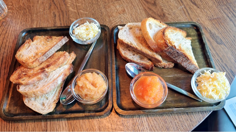 Мне дали одно меню. Еду вижу. Серьёзное, понятное предложение, даже «Карта грибов» есть. Напитки вижу (квас и морс по 150, вода — 410, пиво от 280, водка от 200), а настойки? «Настойки спрашивайте у меня!» Я готов спрашивать у персонала ассортимент, и спасибо, что он меняется, как всё рукотворное, противовес номенклатуре заводской, но я хочу хотя бы представлять, какие цифры увижу в счёте за настойки, и не пытаться уложить в голове десятки «вкусов» для выбора. Оставляя более четырёх тысяч за ужин без алкоголя, не экономить люди ходят в бар с икрами, просто не хочу расспрашивать, то, что кажется унизительно-нищебродным: «А сколько стоит...», или получать сюрпризы, как в некоторых барах Петербурга.