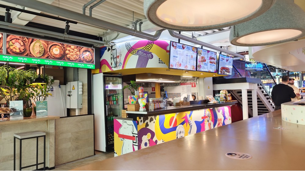 Год назад (https://allcafe.ru/reviews/kolonka-restorannogo-kritika/proekt-subboty-v-eat-market-pita-piter-tretiy-sezon/) начинал так же. Греческий салат (390): цена невысока, за это время не менялась, продукты хорошие, всё нравится, сыр разделили — заметнее уголки и удобнее! С ресторанными «греками» за 900 не сравниваем! Опять: чуть (в два раза) больше сушёных травок присыпки, что и делает греческий салат! Орегано сушёный или смесь готовая «для греческого», что чуть шире составом — что угодно положите, но окраса больше. Масло хорошее использовали, ему помощник нужен.